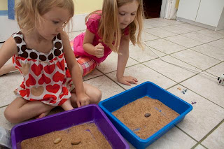 This little trip got me thinking about something I could put together with the girls to learn a little about the pond. What I came up with was a little sensory bin that we could put together out of stuff we had at home (this also made me think we keep some odd things around this house).