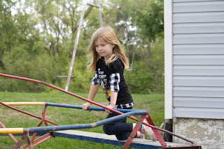 This past week started with an 80th birthday party for Nathan's grandpa. It started early with fishing which we missed, but luckily the girls had stayed the night with Grandma and Grandpa and got to go. It was the first time either of the girls had been fishing, so they were excited I'm sure. From what I hear Bria was pretty good at casting. Neither of caught any fish, but they both want to go again. Nathan, Eli, and I arrived just before lunch. Unfortunately the overwhelming smell of fish made eating impossible for me; everyone else seemed to enjoy it though. All three kids had a good time. They played on the swings, helped in the garden, played some games, chased some cats, and went to visit the horse.