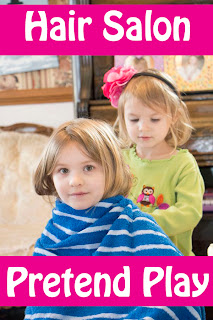 Our community helper for H is Hair Stylist! The girls got a brief introduction to this last week when grandma helped cut Eli's hair. Well Bria helped with the spray bottle. As you can see from Nadia's hair, Bria helped a lot!